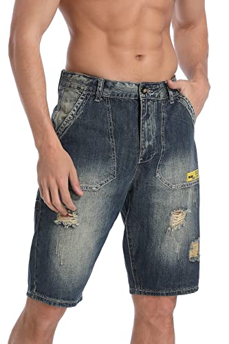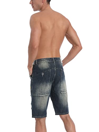 Ziilay Cargo Jeans 3/4 Uomo Cargo Shorts Jeans Capri Destroyed Jeans Pantaloncini Corti Estivi Bermuda Zerrissen Loose Fit, Shorts/ 712-blu scuro, 28W