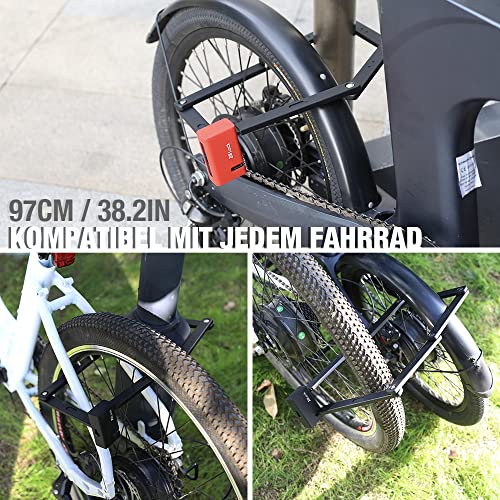 Portatile: ZiiLock M viene riposta piegata. Con una lunghezza totale di 97 cm, la catena può essere accorciata a soli 22 cm e pesa 1,2 kg / 2,7 lbs, rendendo il lucchetto comodo da trasportare o fissare al telaio della bicicletta.