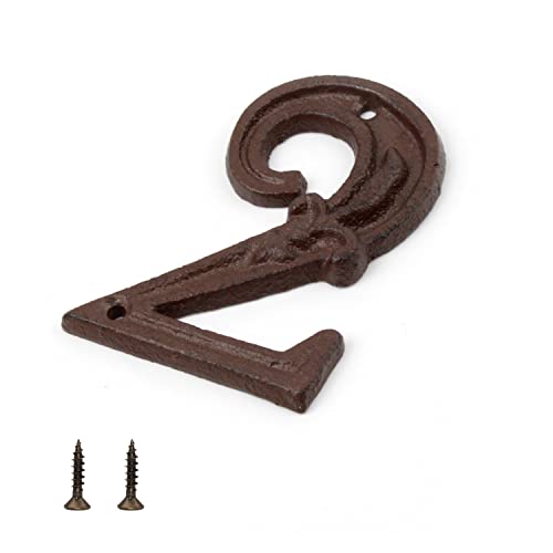 ZIJANG Taglia Larga in Ghisa Numero 2, Numero Civico in Metallo Rustico, Numero Civico Decorato con Forma di Fiori di Iris, con 2 Viti, Utilizzato Principalmente per Numero Civico