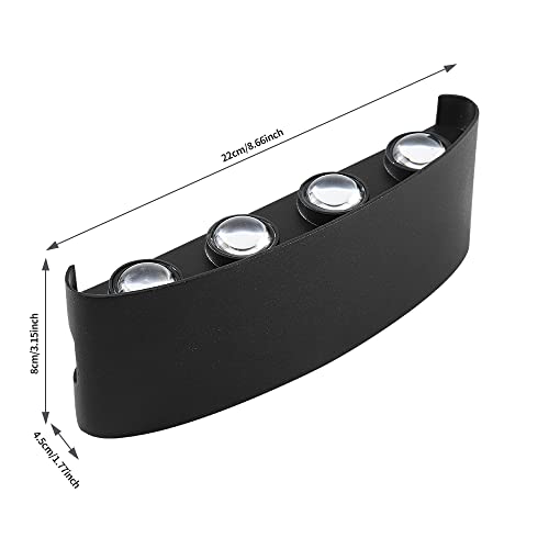 ZIKEY 8W LED Moderna Lampada da Parete, Bianco Caldo 3000K, Applique da Parete Impermeabile IP65, Lampada da parete decorativa, Disponibile all'interno e all'esterno (Nero)