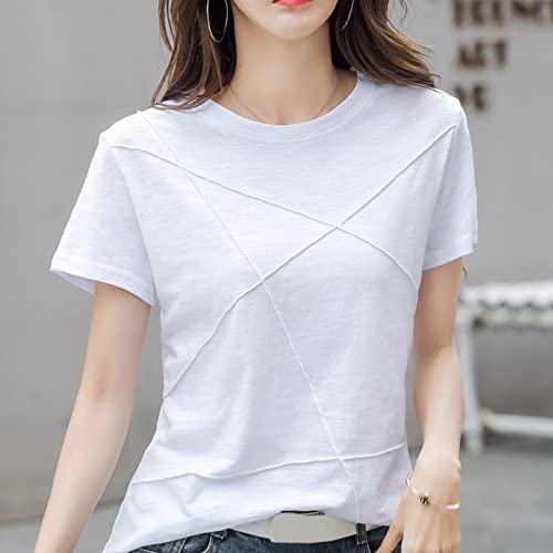 Zilosconcy Maglietta in tinta unita, slim fit, basic, casual, con scollo rotondo, a maniche corte, estiva, con scollo a V, sportiva, senza maniche, da donna, Z78-bianco, XXL