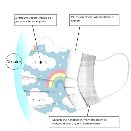 Zilosconcy 50 Pezzi Traspiranti_Antipolvere, Stampa Elastici per Le Orecchie 3 Strati Protezione Visiera Bocca Faccia Adatto per Bambino Scuola, Lezione Online a Casa