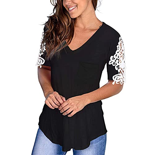 Zilosconcy Tshirts Elegant Sommer Tops Schulterfrei Oberteil Damen Camicia Casual Tinta Unita Camicetta Maglietta con Scollo a V Camicia Donna a Maniche Corte