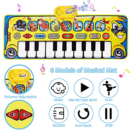 【MATERIALE ANTISCIVOLO E DI SICUREZZA】 Il tappetino per pianoforte è realizzato in morbido tessuto non tessuto, antiscivolo, sicuro e non tossico, sicuro per i bambini da toccare e calciare. I tessuti di alta qualità non danneggiano i piedi dei bambini ed è facile da pulire (prendi un panno umido per pulirlo). Il tappetino per pianoforte per bambini è sensibile al tatto, può essere riconosciuto automaticamente anche i bambini non toccano un bersaglio preciso.