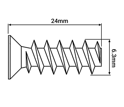 Imballato: 50 viti. Dimensioni: 6,3 x 24 mm. È inclusa una punta per cacciavite adatta.