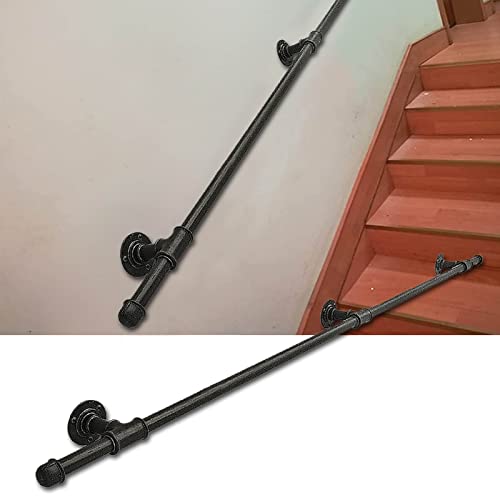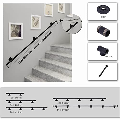 ZINIUKEJI Ringhiere Industriali per Scale in Ferro Battuto Ringhiera Corrimano Interni Esterni Ringhiera Maniglione - Kit Completo, Ringhiera per Scale a Parete Nera (Size: 30cm)