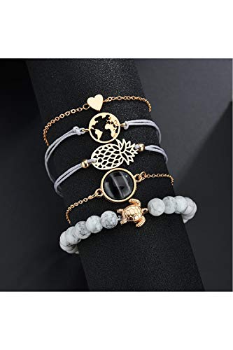 Zinmuwa Donna Bracciale Imposta Bangle. Regolabile Amicizia Tartaruga Mondo Mappa Amore Pacco Set3P2 One Size