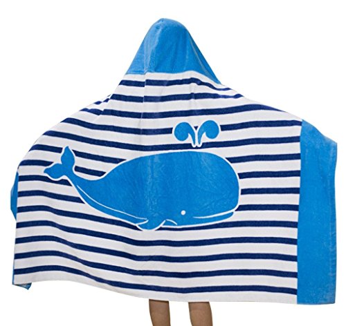 Zinsale Cartone Bambini Telo da Bagno con Cappuccio Telo Mare Poncho in Morbido Cotone Bambini Accappatoio Coperta (Blue Stripe Whale)