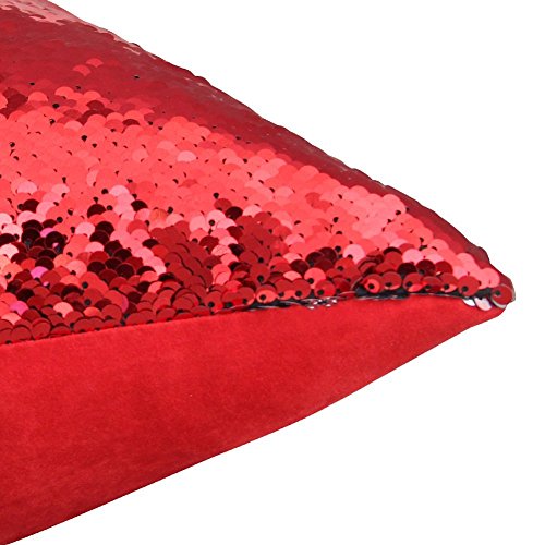 Zinsale Magico Reversibile Federe per Sirena Copricuscino con Paillettes Fodera per Cuscino da 40x40cm (Argento + Rosso)