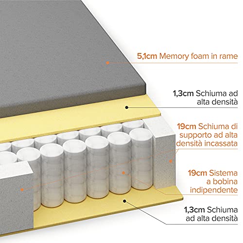 VANTAGGI SENZA PREZZO AGGIUNTO - con un coprimaterasso adattivo in grado di assorbire l'umidità, la memory foam con raffreddamento in rame dotata della certificazione OEKO-TEX, bobine che isolano il movimento e il supporto superiore dei bordi, questo design offre le caratteristiche di un materasso di qualità ottima a un prezzo accessibile