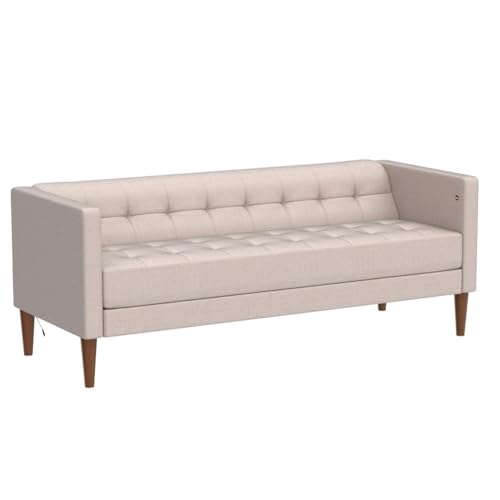 ZINUS Pascal Divano con porte USB, Anni '50, Montaggio facile e senza utensili, Imbottitura capitonné, Braccioli smoking, Piedini affusolati, Divano in una confezione, Beige chiaro