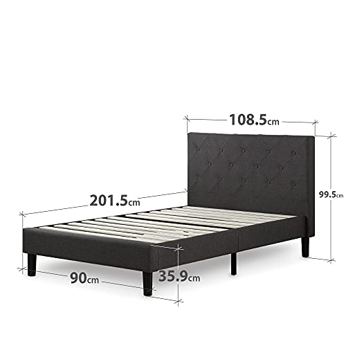 Zinus Shalini Upholstered Diamond Stitched Platform Bed, Metallo/Tessuto, Grigio, 90 x 200 cm