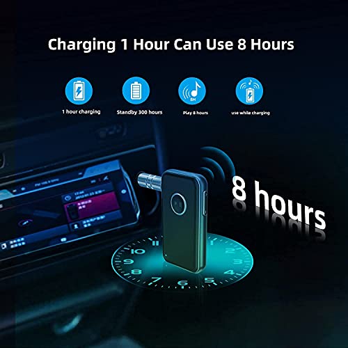 BATTERIA INCORPORATA - Il ricevitore Bluetooth per auto ha una batteria integrata e puoi goderti fino a 7,5 ore di riproduzione e questo adattatore Bluetooth può essere utilizzato durante la ricarica. Non ti preoccupare per il problema della batteria.