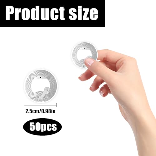 【La confezione include】50 fogli di adesivi NFC Tag autoadesivi, questi adesivi hanno un diametro di 25 mm/1 pollice e sono sottili come carta, ogni NFC Tag è dotata di supporto adesivo per una facile applicazione. Le NFC Tag sono realizzate in PVC impermeabile con una superficie liscia e scrivibile.