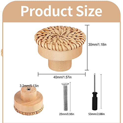 ZIOYA 12 Pezzi Pomelli in Rattan Pomelli per Mobili in Rattan Legno Rotonde con Viti e Cacciavite Pomelli Cassetti in Legno per Cassettiera Cassetti in Legno Armadi Comodino