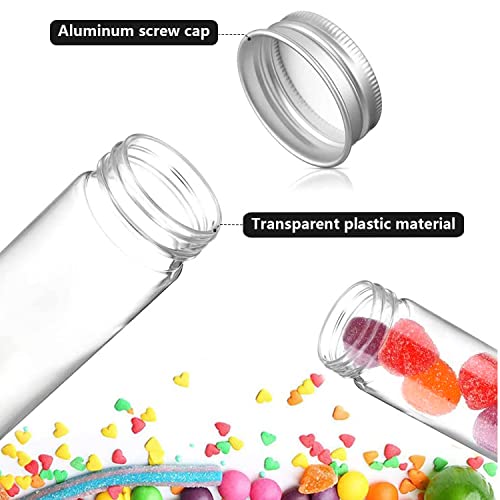 ZIOYA 24 Pezzi Provette Plastica 110 ML con 2 Etichetta Adesiva Trasparente Provette in Plastica con Tappo a Vite per Caramella Cioccolato Confetti Semi Artigianato Fai