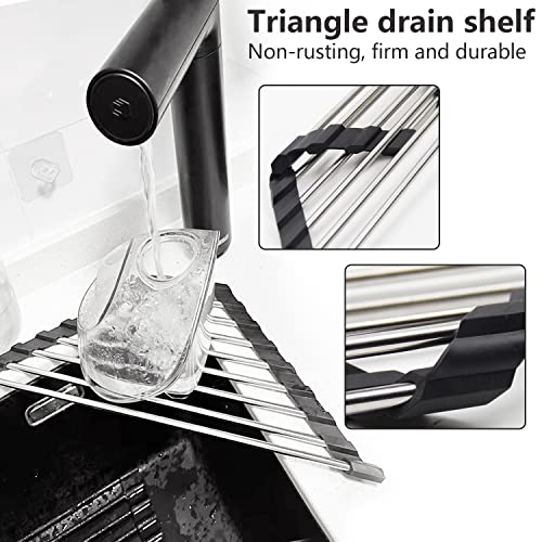 ZIOYA Scolapiatti da Appoggio Nero Pieghevole Nero Scolapiatti da Lavello Triangolare Acciaio Inox Scolapiatti Rastrelliera per Essiccare Frutta Verdura e Piatti
