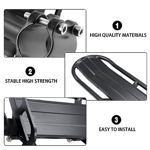 Materiale: portapacchi bici posteriore realizzato in lega di alluminio di alta qualità, resistente e durevole, il portapacchi è leggero e resistente alla corrosione, non arrugginisce dopo un uso a lungo termine.