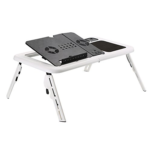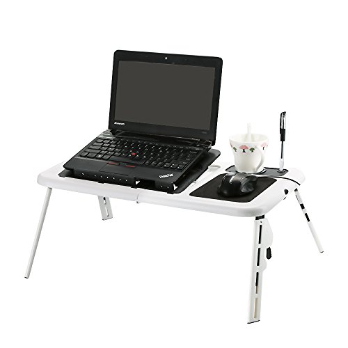 Zipom - Vassoio per la colazione portatile, pieghevole, per computer portatile, con 2 ventole, tappetino per mouse e porta tazza, porta USB pieghevole