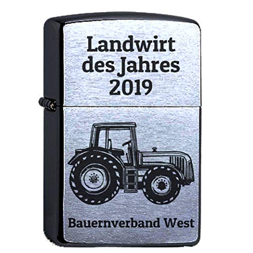 Zippo generico con l'incisione desiderata del tuo testo agricoltore, originale cromato spazzolato, personalizzato, fattoria, agricoltura, trattore.