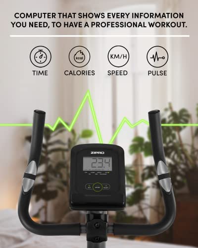 ZIPRO Cyclette da Allenamento DRIFT, Bici da fitness, Home Trainer, Fitness Display LCD, Sensori delle Pulsazioni, 120kg, Nero, Taglia unica