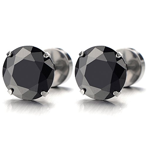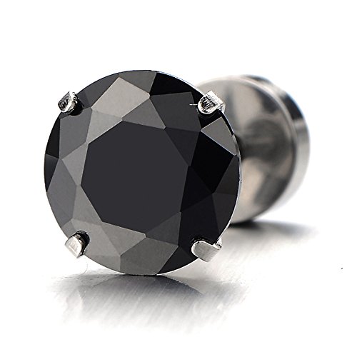 1 Paio 6MM Nero Zirconi, Orecchini da Uomo da Donna, Orecchini a Lobo, Acciaio Inossidabile