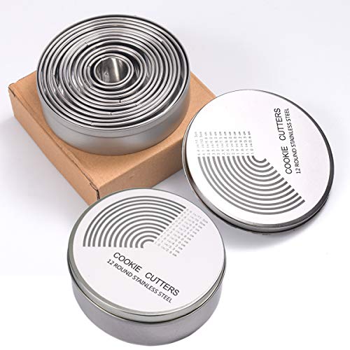 ZITFRI 12 PCS Coppapasta Rotondo Acciaio Inox Tagliapasta Aperta Tondo Stampi per Biscotti Formine Dolci Formine Rotonde con Una Scatola