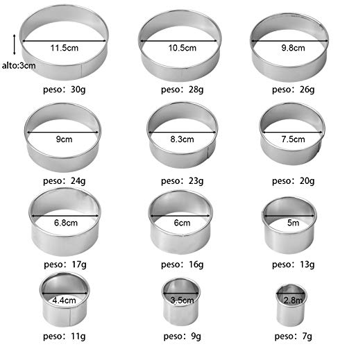 【Una Varietà di Dimensioni】: 2,8 cm-11,5 cm, 12 diverse dimensioni di coppapasta acciaio da taglio circolari, una varietà di stili, tagliapasta rotondo per le varie esigenze, sentirsi a proprio agio e facile da riporre.