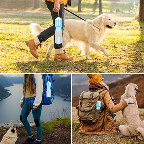 Zivacate Borraccia Portatile per Cani 600 ml, Dispenser Acqua per Cani a Prova di Perdite con Contenitore per Cibo da 100 g e Sacchetto di Cacca, Ciotola Acqua da Viaggio all'aperto per Cani e Gatti