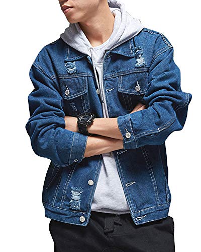 ZIXING Fashion Uomo Giacca Classica di Jeans Vintage Trucker Cappotto a Manica Lunga Taglie Forti Blu Scuro 3XL