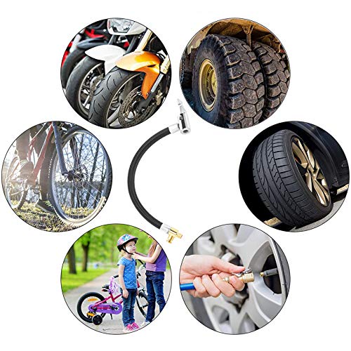 Ziyero Adattatore per Tubo Flessibile della Pompa di gonfiaggio Estensione Flessibile della Valvola per Pneumatici Gomma Tubi Prolunga Pompa Ruota per Tutti i Pneumatici con Valvole Standard—Nero