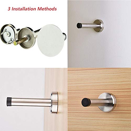 Ziyero T Montaggio Parete Fermaporta Gomma Acciaio Inox Paraurti Fermaporta con Materiale di Fissaggio Antiruggine Riduce il Rumore, per Camere da Letto, Bagni, Uffici, Porte Esterne Ecc—Argento