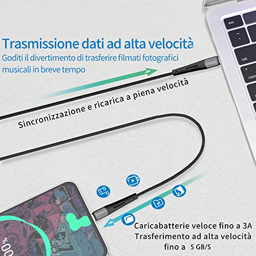 【Ricarica rapida e trasferimento dati】 Il cavo USB C cavo usb type-c ricarica rapida supporta una velocità di ricarica massima di 3 A e una velocità di trasferimento dati fino a 5 Gbps, che è più veloce della maggior parte dei cavo USB Type-C standard e persino più veloce del cavo originale per molti telefoni.