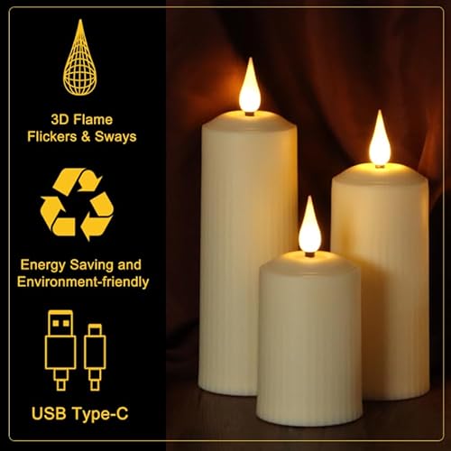 ZIYOUDOLI Candele LED Ricaricabili con Timer Remoto Candele LED Impermeabili da Esterno di Tipo-C Ricaricabili Adatte per Soggiorno Esterno Giardino Sala da Pranzo 9 pezzi (5 x 10,5/14/17 cm)