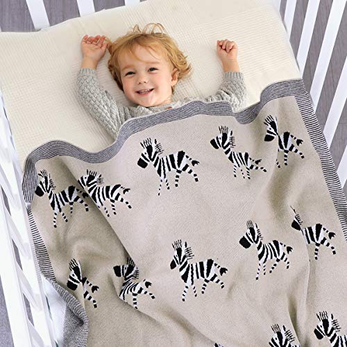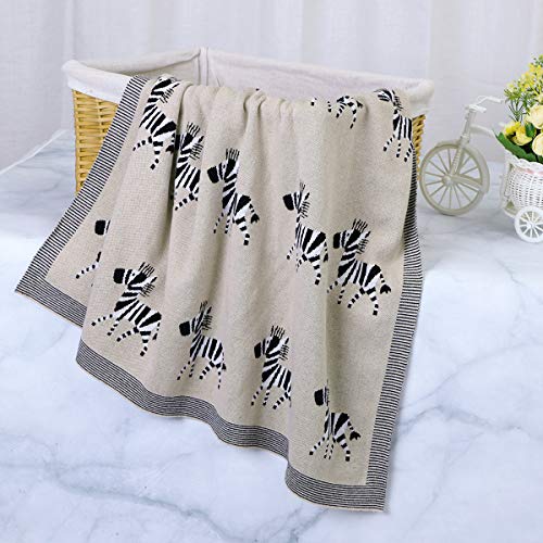 Ziyunlong - Coperta per neonato, 100% cotone, lavorata a maglia, morbida coperta per Newbron con graziosa zebra, 100 x 80 cm