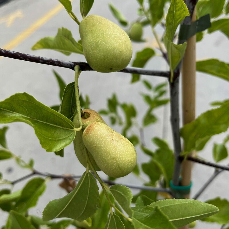 La pianta di Ziziphus sativa "Thornless" è la pianta delle Giuggiole, un arbusto conosciuto anche come dattero cinese, che appartiene alla famiglia delle Rhamnaceae, in grado di raggiungere altezze abbastanza elevate (8-10 metri).Possiede rami senza spine, foglie verdi brillante dal bordo quasi seghettato e fiori di colore bianco. I frutti di forma ovale, sono grandi quanto un'oliva, presentano polpa giallognola, buccia marroncina-brunastra e sapore molto dolce.Le bacche sono comsumate fresche oppure utilizzate per la preparazione di decotti.MATURAZIONE: da Giugno ad Agosto