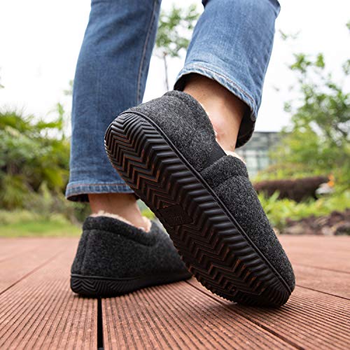 ZIZOR Accoglienti pantofole da uomo in memory foam con fodera in pile, suola in gomma antiscivolo per interni ed esterni con fasciatura elastica unilaterale, Nero, 42 1/3 EU