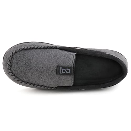 ZIZOR Pantofole da uomo in pelle scamosciata, comode scarpe da casa in schiuma di memoria con suola in gomma antiscivolo, Grigio scuro, 44 EU