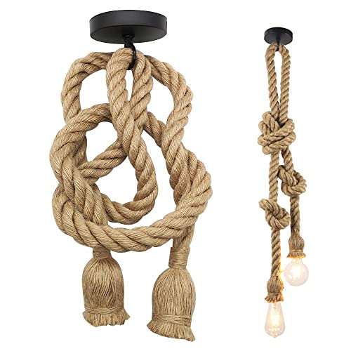 Decorazione Fai-da-te: La lunghezza di ogni corda di canapa è 1 m (totale 2 m). Puoi legarlo con vari nodi creativi. Il lampadario non può solo svolgere un ruolo di illuminazione, ma ha anche un forte effetto decorativo.