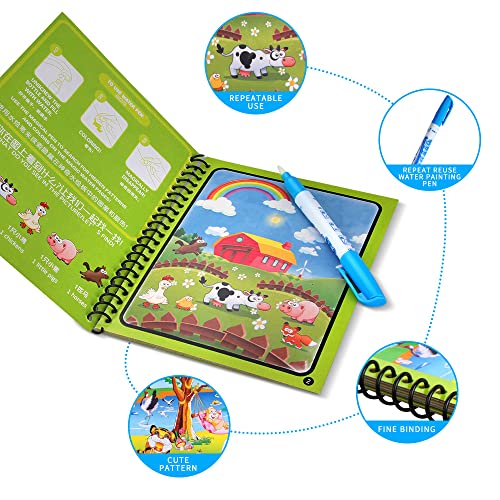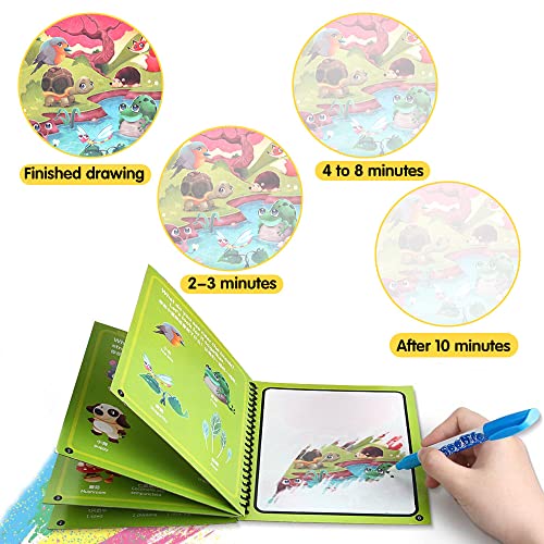 ZJRung Set di 4 libri da colorare magici, libri da colorare ad acqua, per bambini, con penna ad acqua