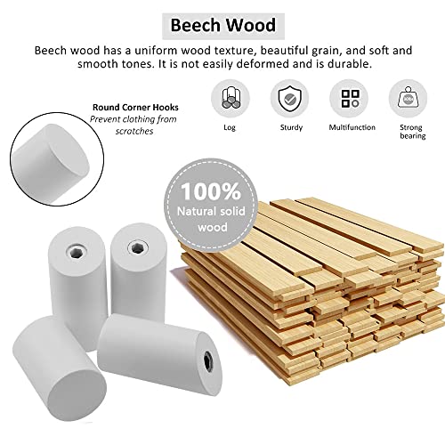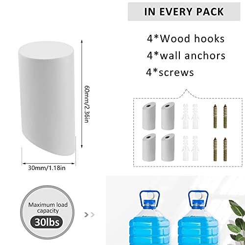 ZJRung 4 Pezzi Ganci da Parete in Legno Bianco Gancio Appendiabit Legno Naturale con Viti 45° Decorazione Gancio per Cappotto con Viti per Cappelli Giacche Sciarpe Zaini Massimo 18 kg