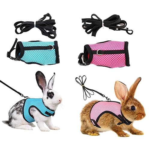 ZKSXOA Pettorina Regolabile per Conigli,2 Pezzi Imbracatura Morbida a Rete Confortevole Imbracatura per Coniglio con Elastico Guinzaglio per Piccoli Animali Conigli criceti Gatti