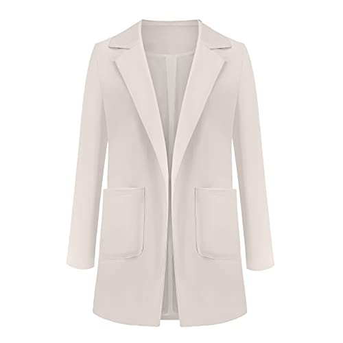 Zldhxyf Blazer da donna, a maniche lunghe, elegante, in lino, lungo, tinta unita, con risvolto, cardigan, blazer da donna, con tasca, bianco, S