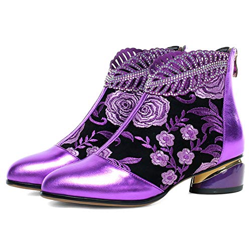 ZLFCRYP Pattini delle Donne di Modo del Cuoio della Mucca Stivaletti Etnici Stivali Fiore Modello di Stile purple-35
