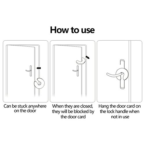 Facile da usare place Posiziona semplicemente il fermo della porta di sicurezza per bambini sul lato della porta e abbastanza in alto da essere fuori dalla portata dei bambini. Quando non in uso, appendi semplicemente intorno alla maniglia o alla maniglia della porta.
