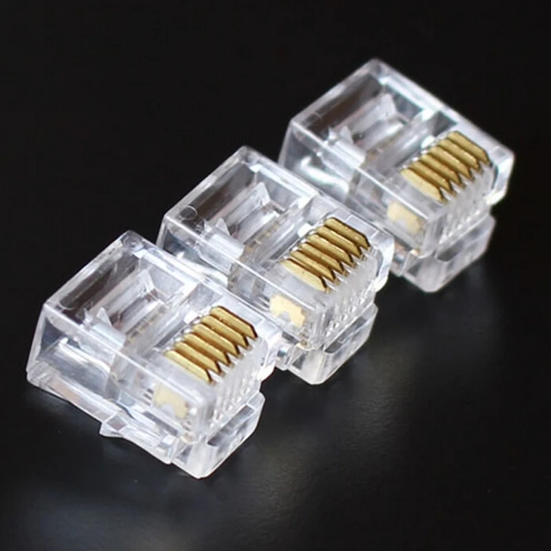 ZLinKJ 100Pcs 6P6C RJ12 Crystal Head Modular Plug Gold Plated Network Connector For Solid Phone Cables Connectors