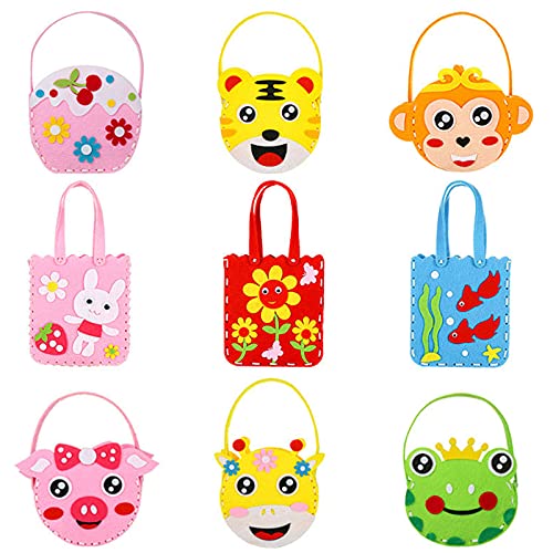 ZLIUTIN 9 Pezzi Kit da Cucito per Borsetta da Bambina Borsa in Feltro Fai da Te Kit da Cucito Fai da Te Principianti Kit da Cucito per Borsetta in Tessuto, attività Creative Mestieri Stoffa