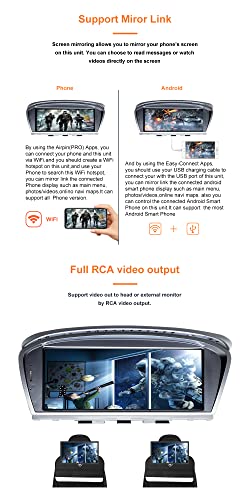 Caratteristiche compatibili: supporta GPS, video 4K, mirroring dello schermo, fotocamera di backup, WiFi, USB, DVR, OBD, TPMS, DAB, controllo del volante, Bluetooth, microfono, ricerca nella rubrica, modalità schermo diviso, CarPlay (NON è necessario il dongle carplay extra).
