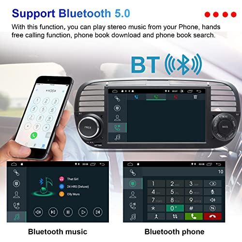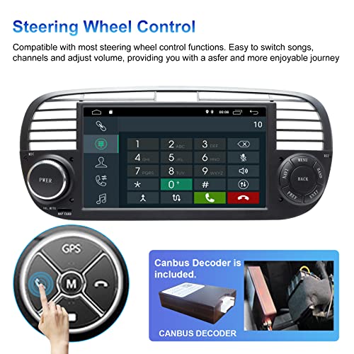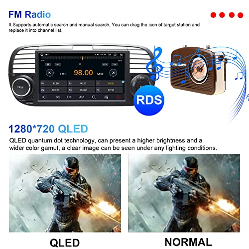 ZLTOOPAI Autoradio Android Stereo, per Fiat 500 2007-2016 Android 11 Octa Core 4G RAM 64G Rom 7 Pollici Capacitivo HD Multi-Touch Screen Autoradio GPS Stereo con