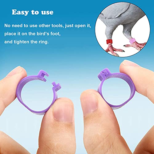 Facile da applicare: il semplice design della clip lo rende facile da attaccare e rimuovere. Basta aprirlo, posizionarlo sulle zampe dell'uccello e stringere l'anello. Solido e non facile da staccare, non danneggia il pollame e può essere riutilizzato.